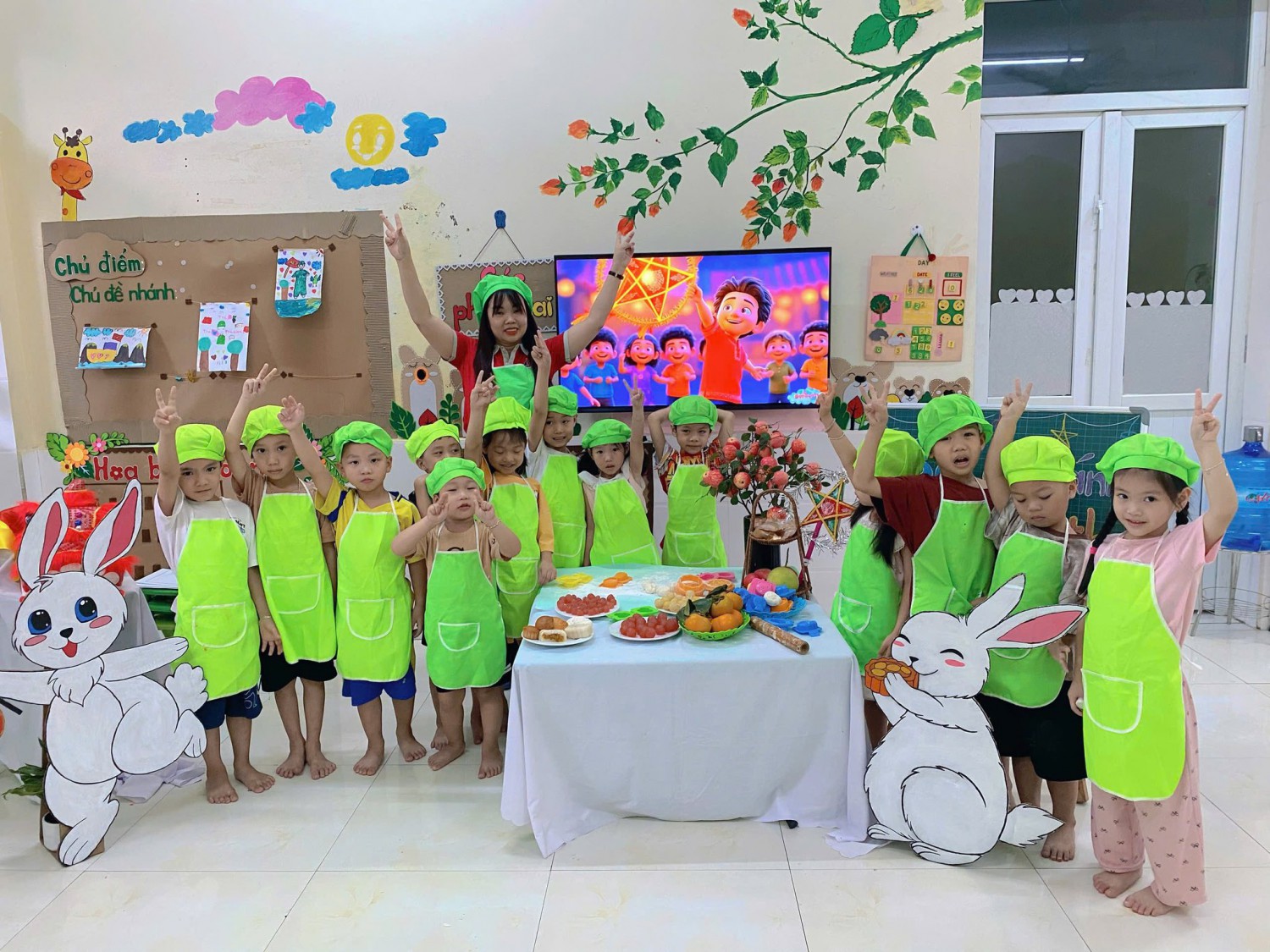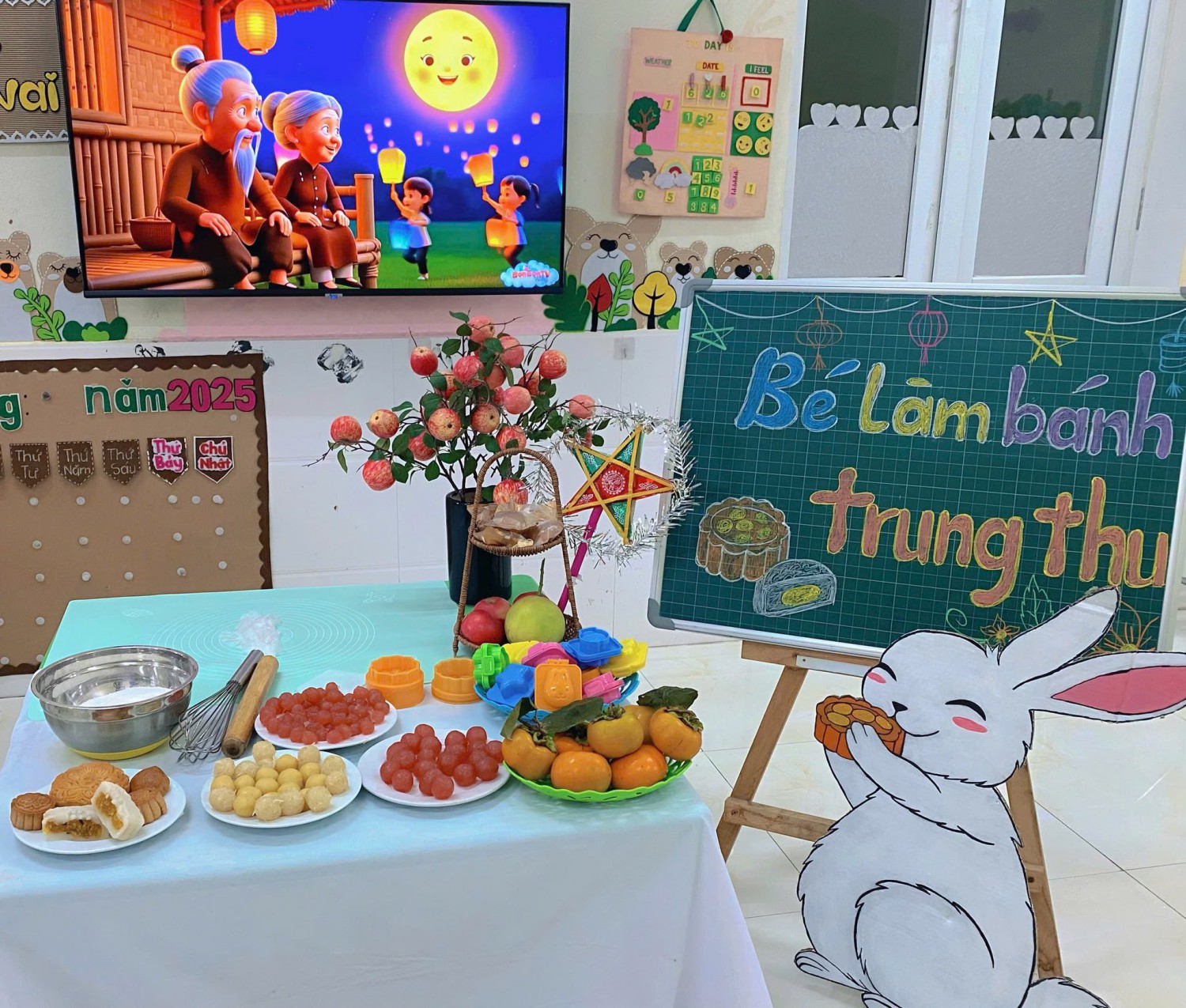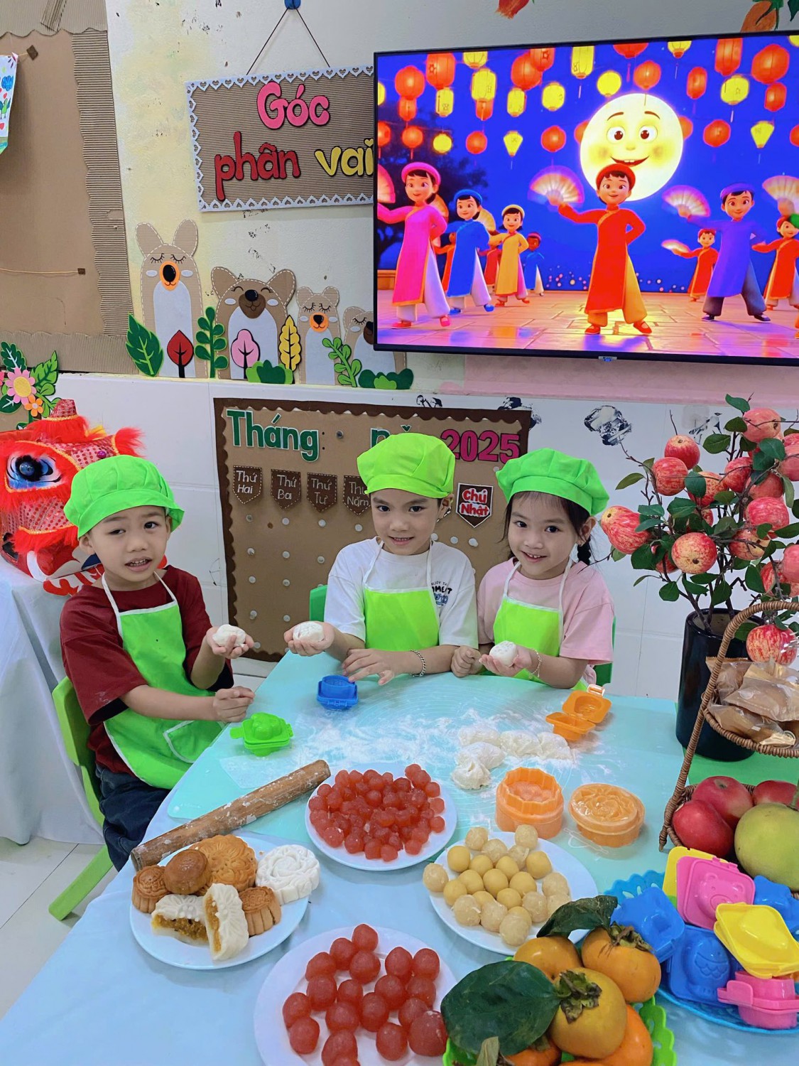 Hòa chung trong không khí rộn ràng của mùa trăng tháng Tám, các bạn nhỏ lớp 5 tuổi A – Trường Mầm non Quảng Yên đã có một buổi trải nghiệm thật thú vị: Hoạt động “Làm bánh Trung thu” 🍪✨