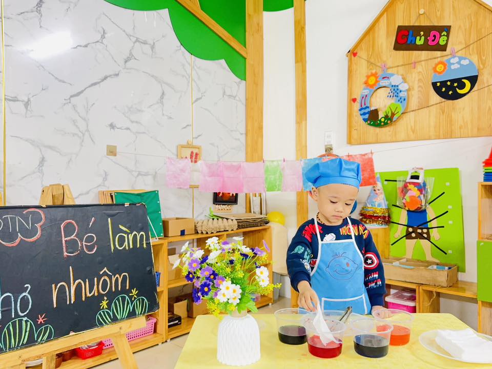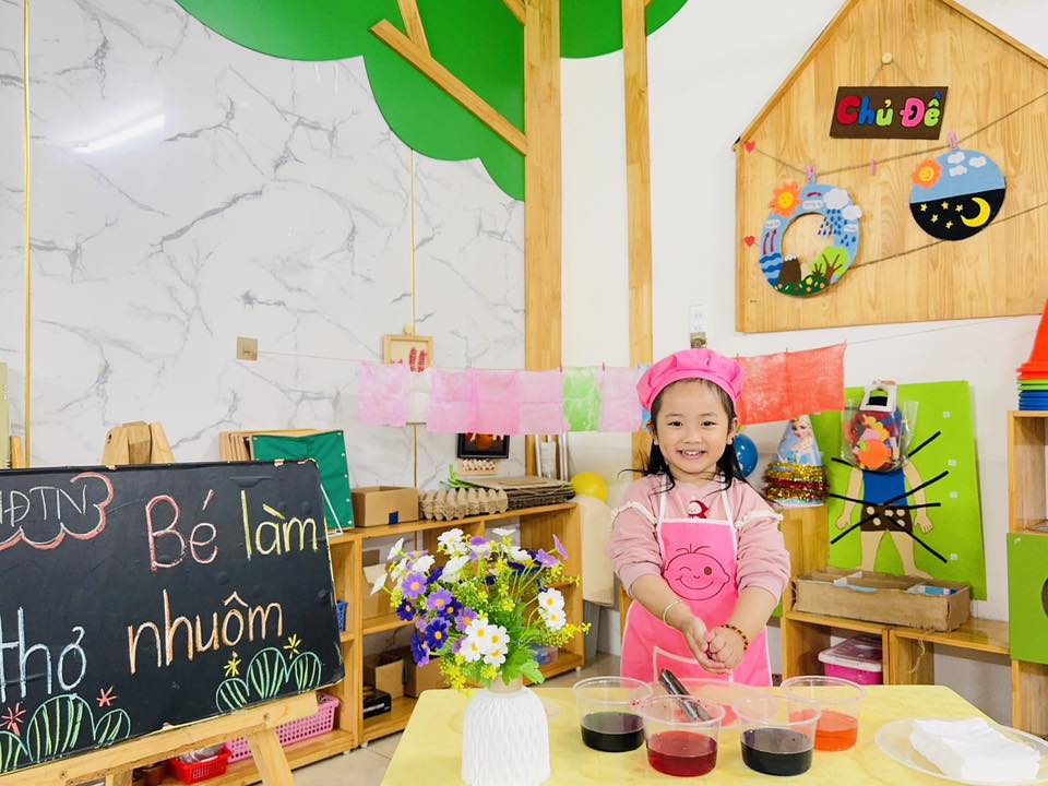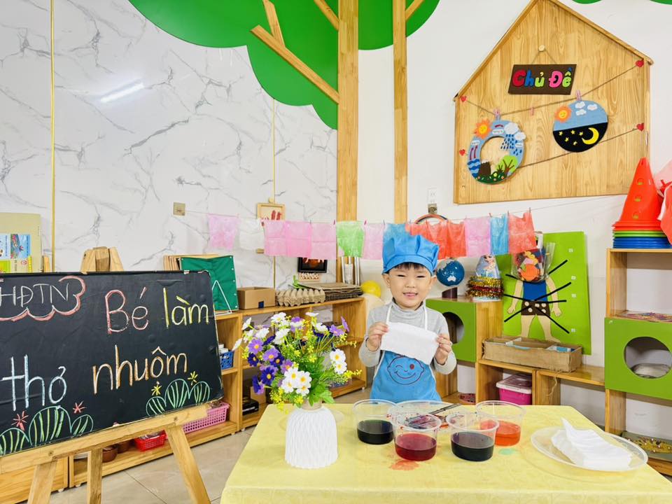 Hôm nay, các bạn nhỏ lớp Chất lượng cao Sunny đã có một buổi học trải nghiệm vô cùng thú vị với hoạt động “Bé làm thợ nhuộm”.