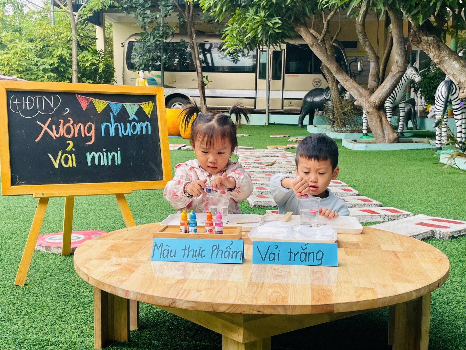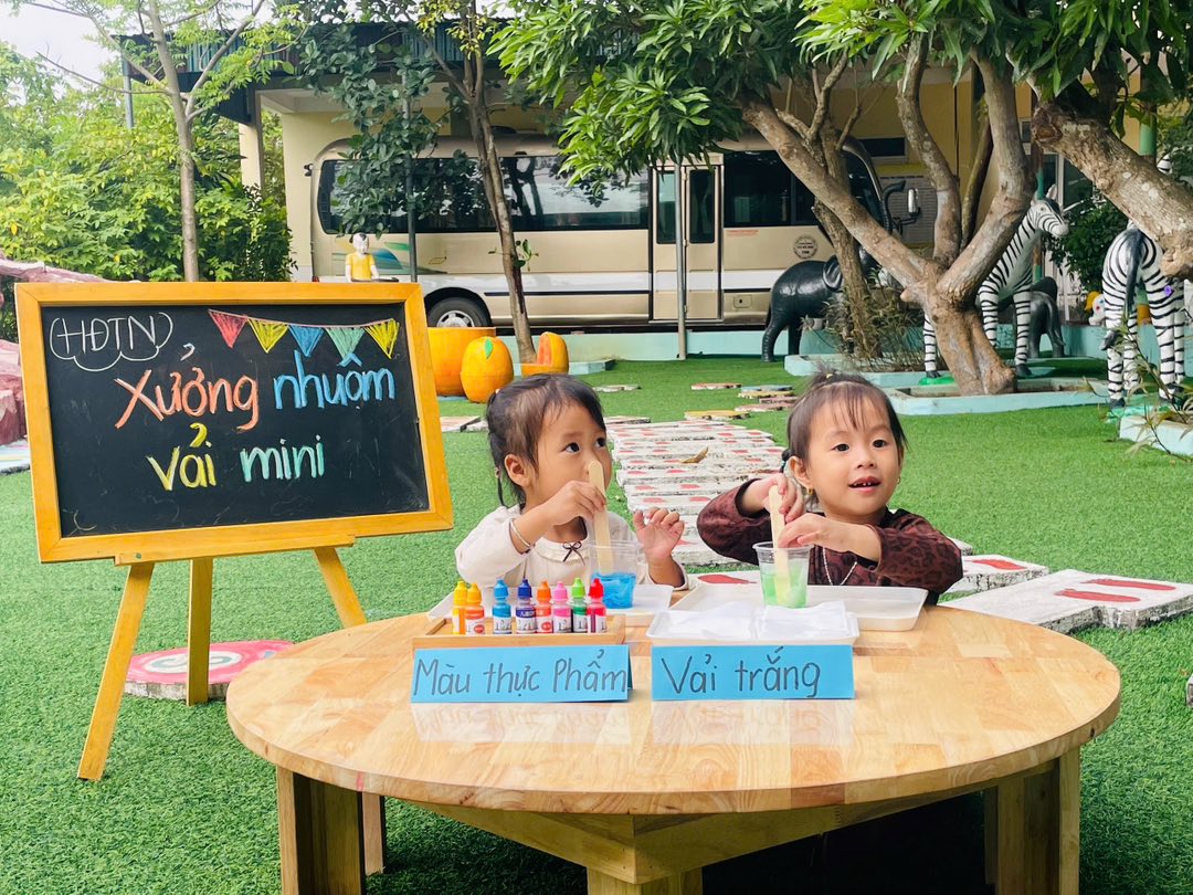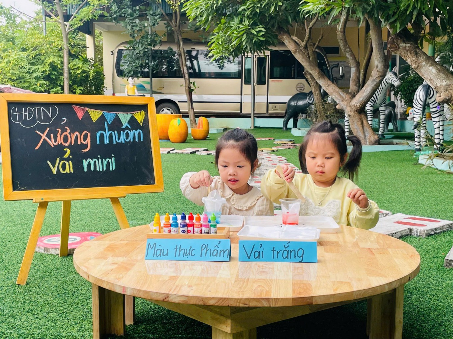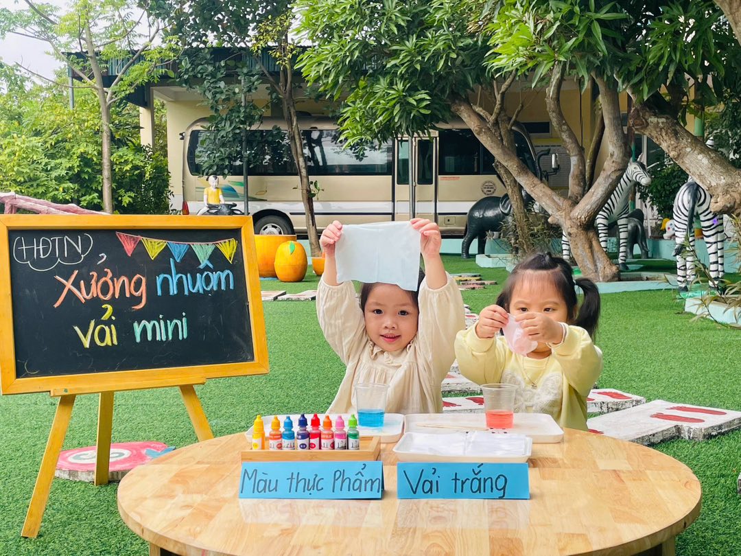 Hôm nay, các bạn nhỏ lớp mẫu giáo 3–4 tuổi CLC Kitty đã tham gia hoạt động trải nghiệm “Xưởng nhuộm vải mini” vô cùng hào hứng và bổ ích 🌈Các con được trực tiếp:🖐️ Chạm, nhúng và nhuộm vải👀 Quan sát sự thay đổi kỳ diệu của màu sắc🎨 Tự do sáng tạo theo ý thíchThông qua hoạt động, trẻ được:✨ Rèn luyện vận động tinh, sự khéo léo của đôi tay✨ Phát triển tư duy sáng tạo, cảm nhận thẩm mỹ✨ Học cách hợp tác, chờ đến lượt và giữ gìn đồ dùng