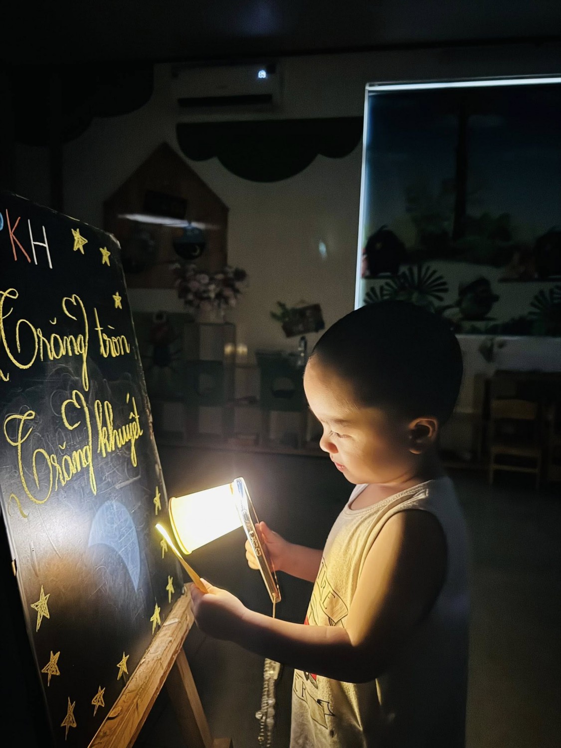 Cuối buổi, mỗi bạn còn tự tay vẽ lại “mặt trăng trong trí tưởng tượng” của riêng mình – có bạn vẽ trăng cười, có bạn vẽ trăng ôm sao ![]()