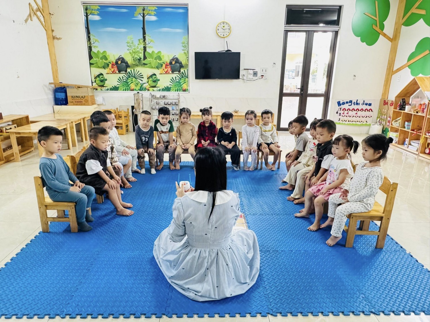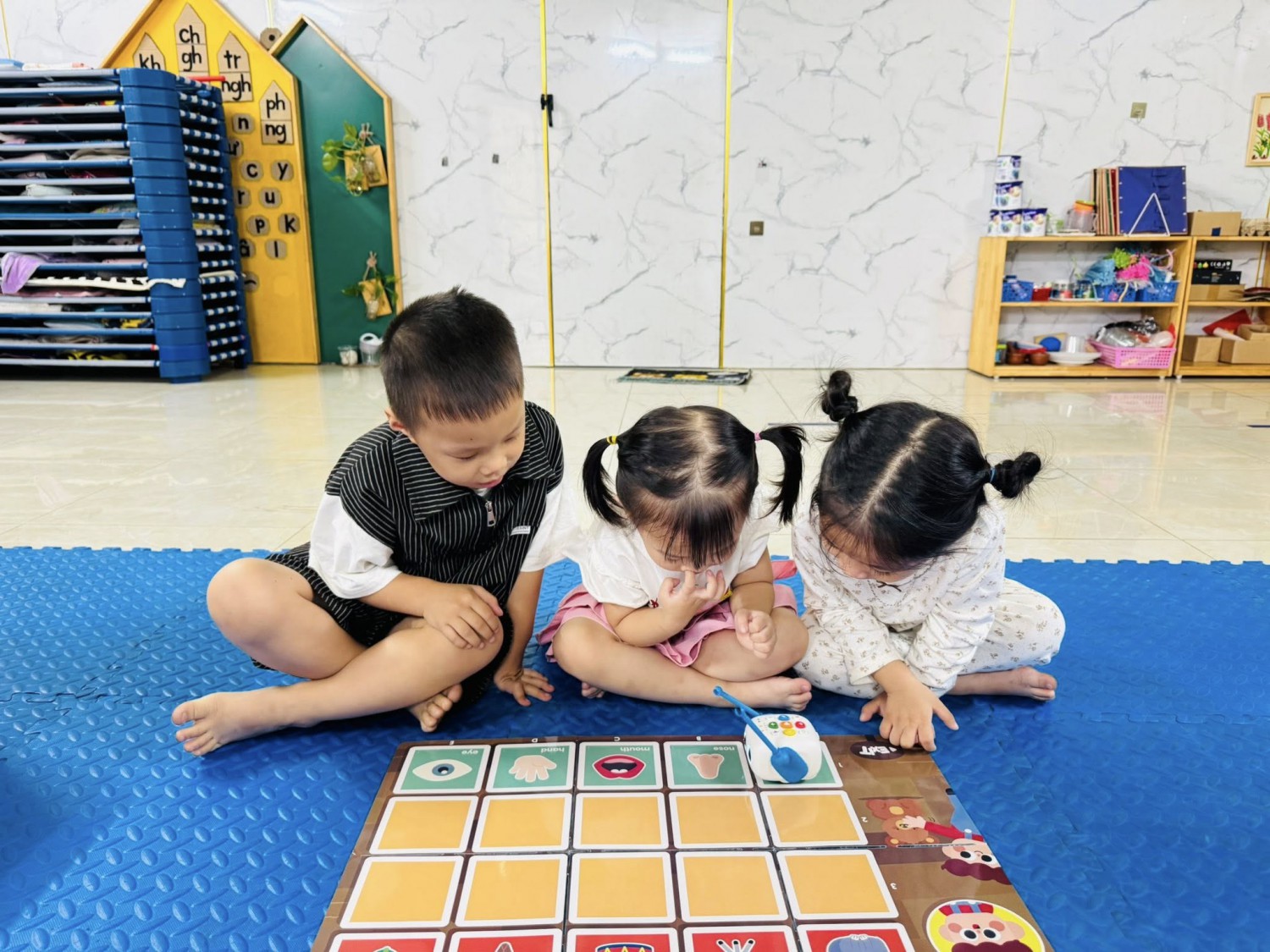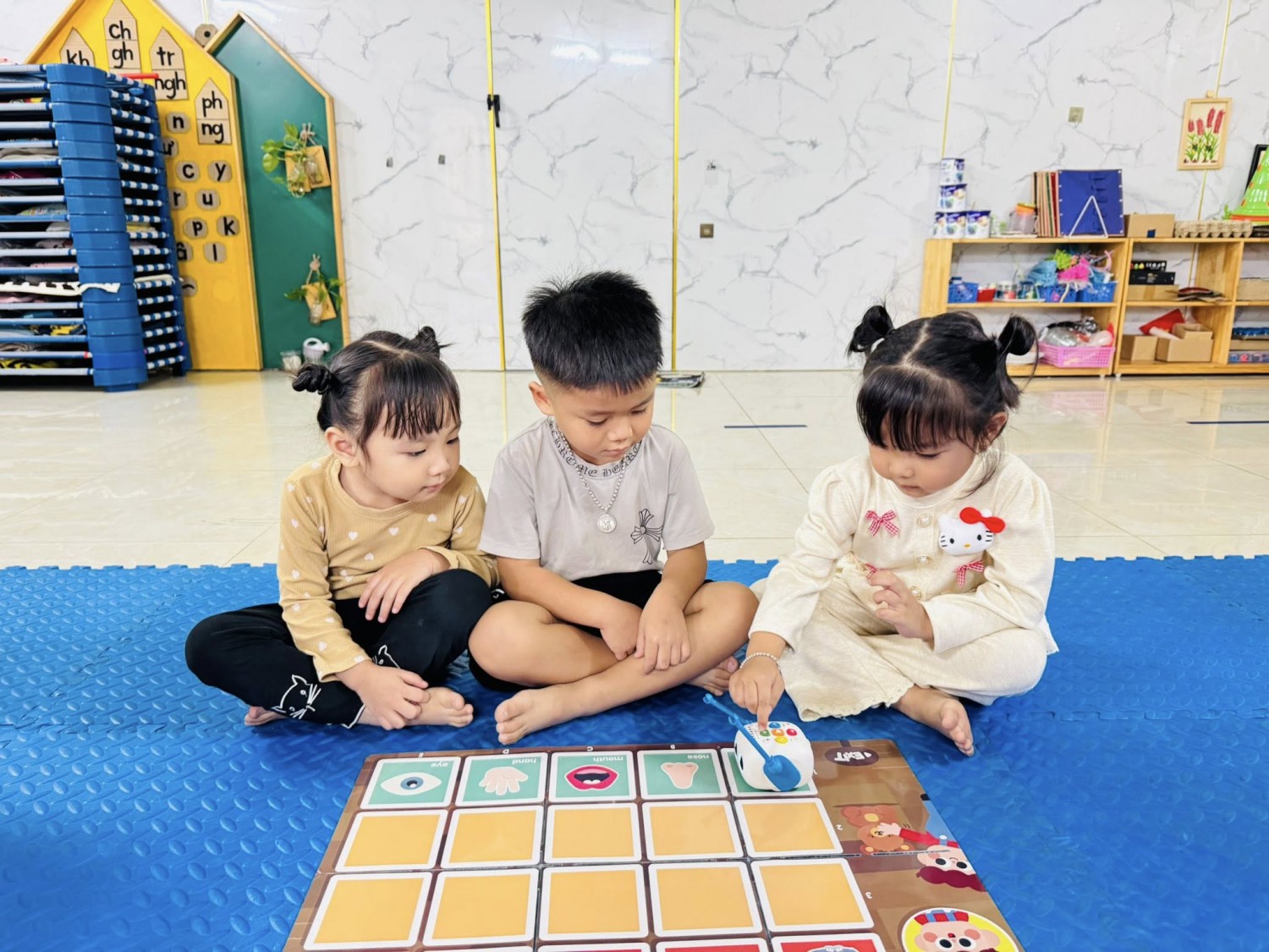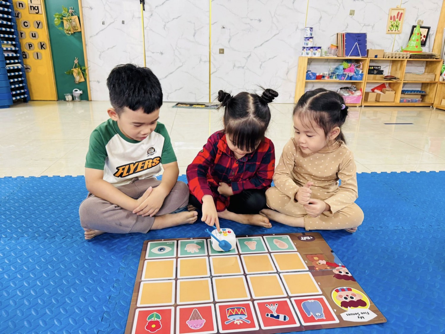 Hôm nay, các bạn nhỏ lớp Mẫu giáo 4-5 tuổi Chất lượng cao Sunny đã có một giờ học thật đặc biệt với chủ đề “My Five Senses – Năm giác quan của bé” 🧠💡Thông qua bộ thảm học lập trình, các con được tìm hiểu về năm giác quan của con người: mắt, tai, mũi, miệng và tay. Mỗi giác quan mang đến cho chúng ta những cảm nhận tuyệt vời về thế giới xung quanh — mắt để nhìn, tai để nghe, mũi để ngửi, miệng để nếm và tay để chạm. 🌍✨