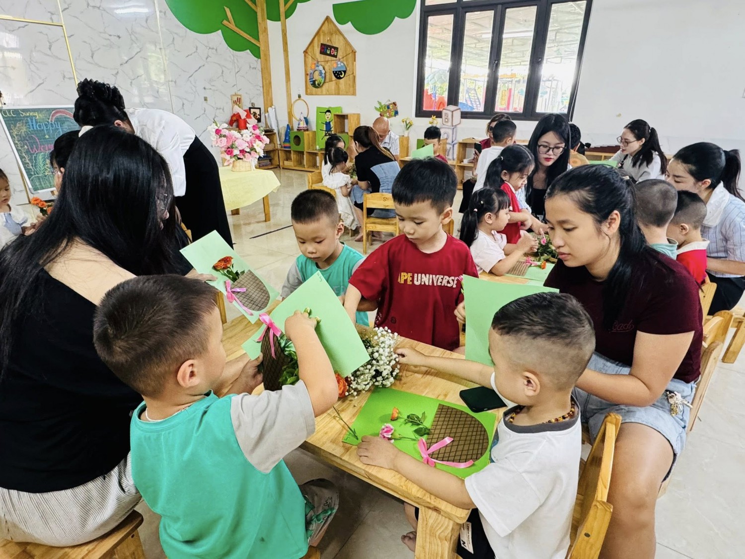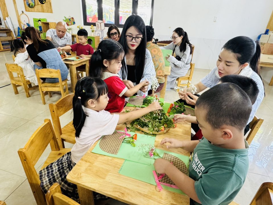 Buổi hoạt động không chỉ mang đến cho các bé niềm vui, sự tự tin và kỹ năng khéo léo, mà còn là cầu nối yêu thương giữa gia đình và nhà trường, giúp các con thêm gắn bó và hiểu giá trị của tình yêu thương qua từng cánh hoa. ![]()