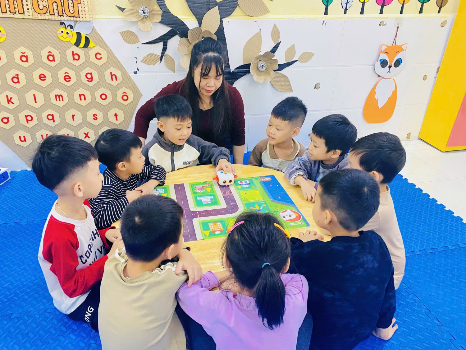 Robot giúp các con quan sát, trò chuyện và tìm hiểu về từng ngôi nhà — từ hình dáng, màu sắc đến công dụng.